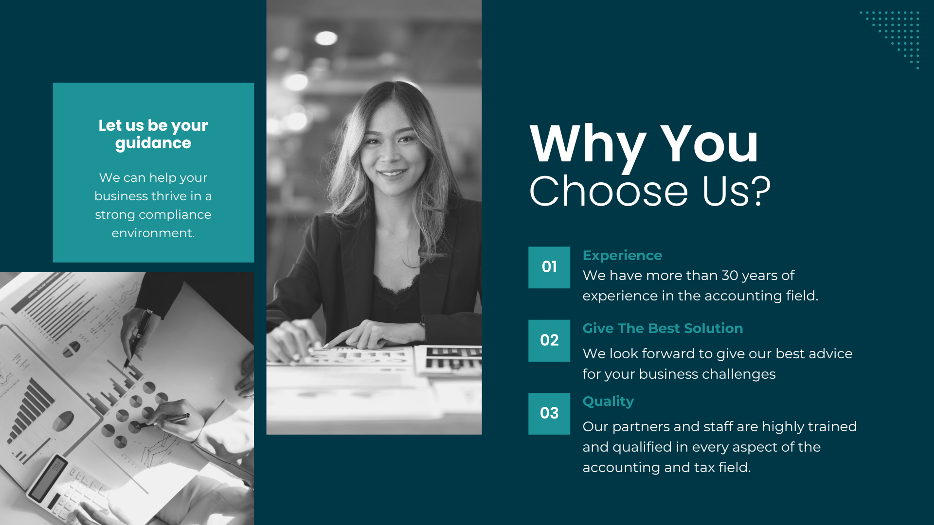 Our partners and staff are highly qualified to perform every task you need for your business.